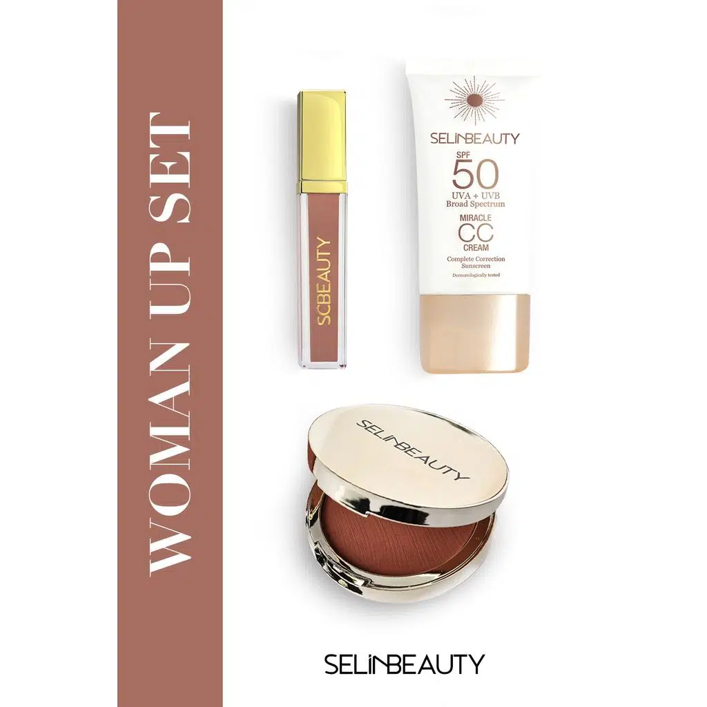 Selin Beauty CC Krem / Selin Beauty Matte Terracota Blush / Selin Beauty Vanilla Ruj Set